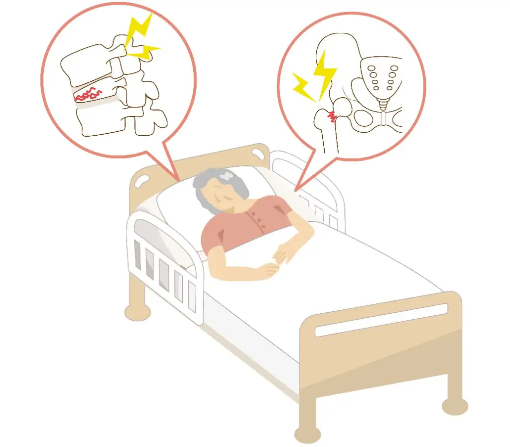 安静 体重をかけないよう安静を保ちます。ただし、完全な寝たきりは筋力・骨密度のさらなる低下につながるため、痛みの範囲内での適度な活動が重要です。